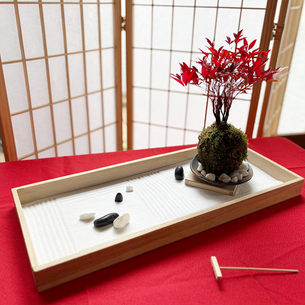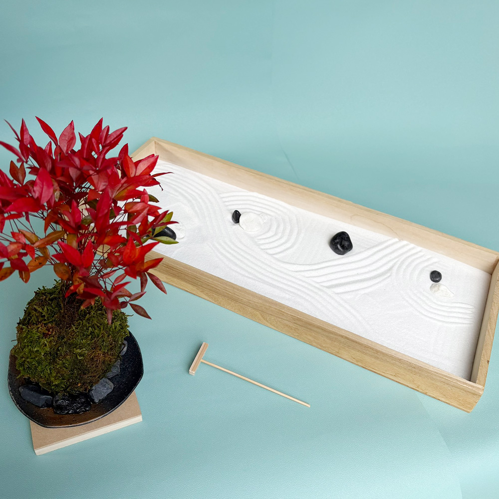 静かに心で石を置いて、砂に模様を描きます。 いつの間にかゆったりとした気持ちに…盆栽とのセットです。贈り物におすすめ!