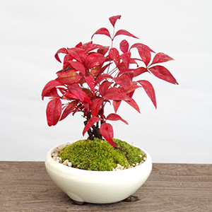 南天(なんてん)の盆栽・万古白丸鉢