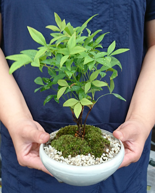 南天→ナンテン→難点→難を転ずるといわれ、縁起物として昔からお正月などに使われている南天を盆栽に仕立てました 。とても丈夫で育てやすい盆栽です。
