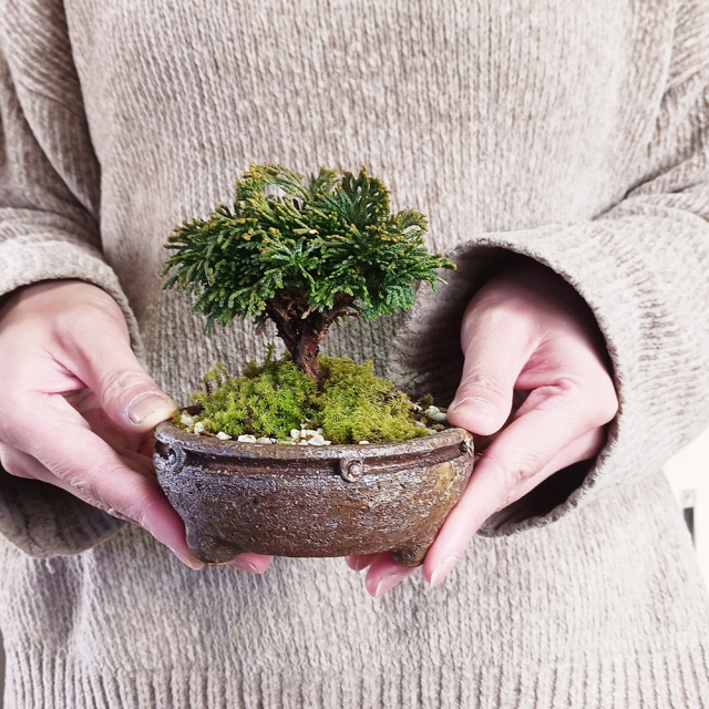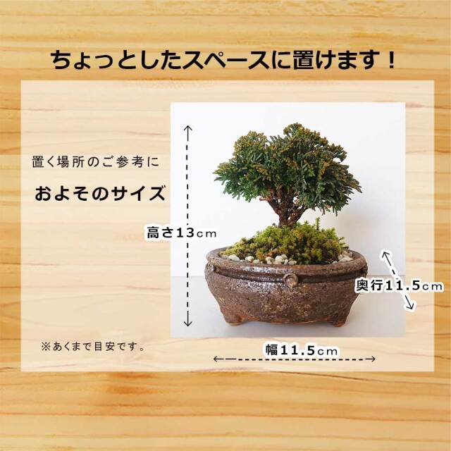 | 内容 | ・連山ヒノキの盆栽(信楽焼丸小紋鉢)・・・1つ ・肥料・・・約1年分 ・育て方のしおり |