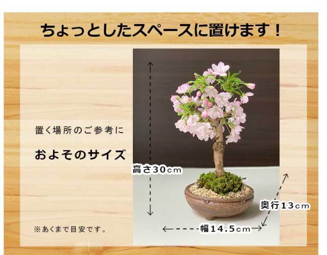 窓を開ければ、そこは満開の桜。その美しい景色をひとり占め。足元に心落ち着くスナゴケが演出。花言葉は純潔・精神美。1年分の肥料がついています。
