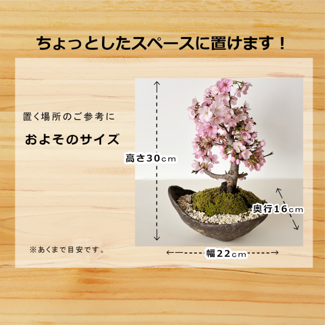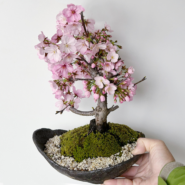 窓を開ければ、そこは満開の桜。その美しい景色をひとり占め。足元には心落ち着くスナゴケが演出。花言葉は純潔・精神美。1年分の肥料がついています。)
