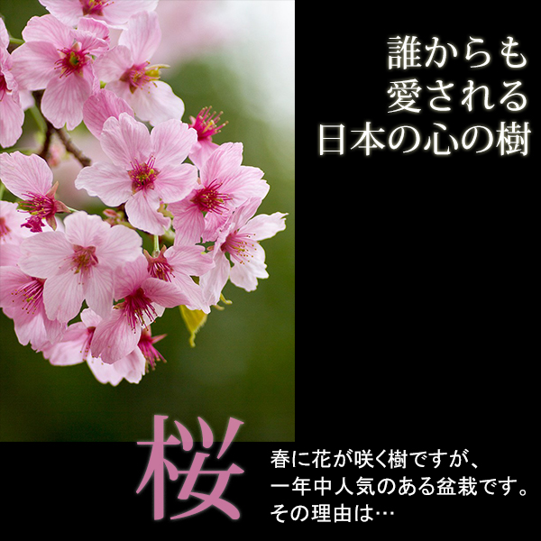 | 内容 | ・桜(陽光桜)の盆栽(くらま鉢)・・1つ ・肥料(約1年分) ・育て方のしおり | |