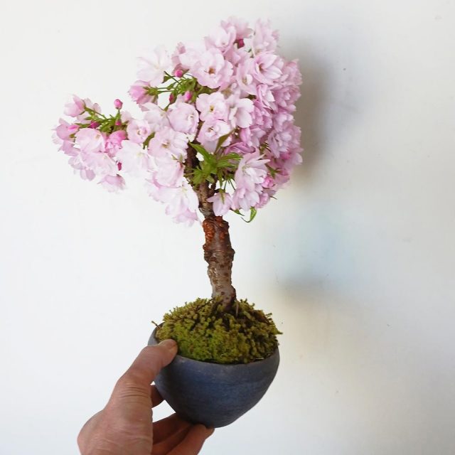 窓を開ければ、そこは満開の桜。その美しい景色をひとり占め。足元に心落ち着くスナゴケが演出。花言葉は純潔・精神美。1年分の肥料がついています。