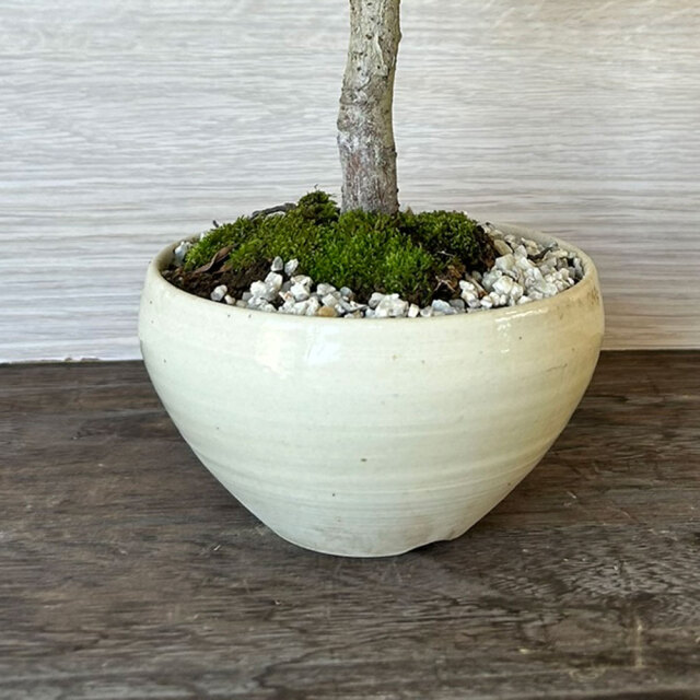 春には白い花が楽める盆栽です。