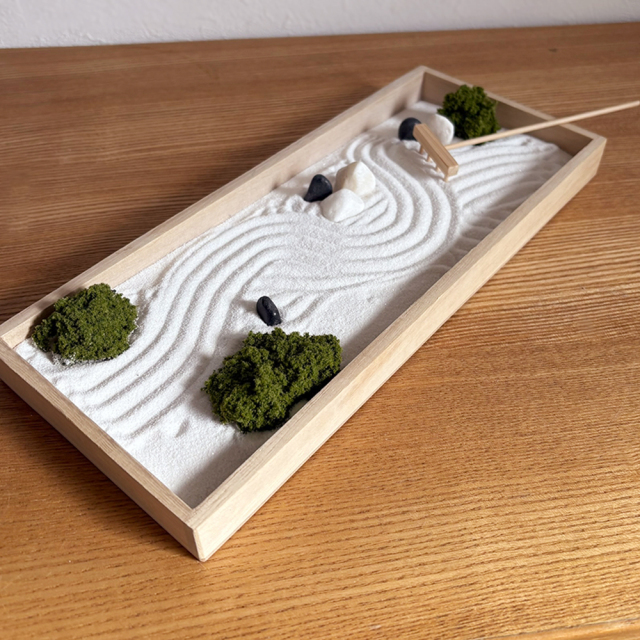 静かに心で石を置いて、砂に模様を描きます。 いつの間にかゆったりとした気持ちに…橋とカメの庭園セットです。贈り物にもピッタリです!長財布より少し大きめのサイズ、重さも約650gですので、持ち運びもラクラク。インテリア 枯山水 キット 日本庭園 作って飾れる ミニ庭園 枯山水セット 苔(アートモス)付 <シンプル> zen garden japan 箱庭 リラックス 海外へのおみやげ 座禅 禅の心 ミニチュア庭園 禅の所作 砂紋 和のディスプレイ 和モダン 卓上
