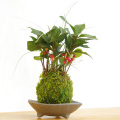 ヤブコウジ苔玉・三つ足灰器セット