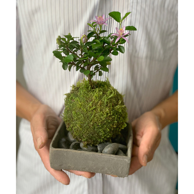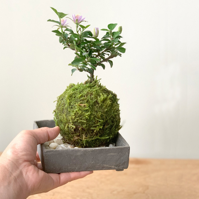 毎年5月ごろから夏まで次々に美しい花が楽しめます。花はピンクから紫色の高貴な色合いで、母の日や父の日の贈り物にも最適な苔玉です