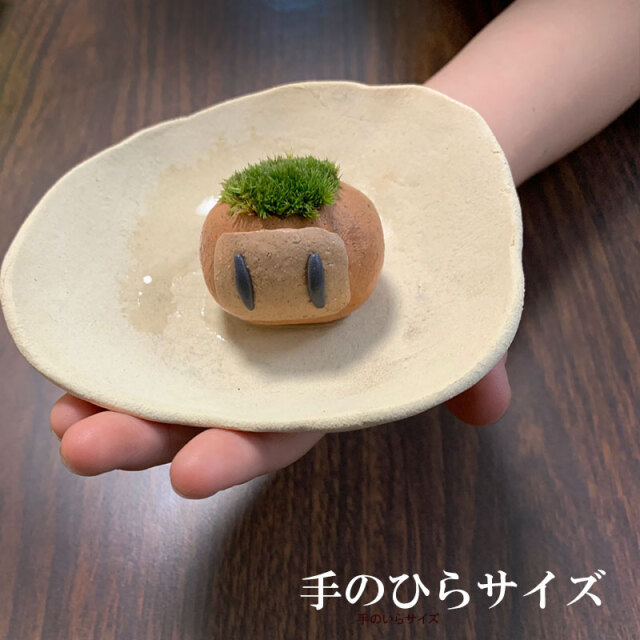 栃木県の益子町で創作活動を行う陶芸作家 真山茜氏。モスモスは素焼きの器に土・ヤマゴケを植え込んだものです。モスモスボンバー一人と受け皿のセットです
